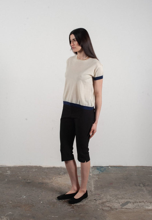 - Tricot en côte : Les côtes sont une autre technique populaire pour les pulls en cachemire. Cette méthode alterne des rangs de mailles endroit et de mailles envers, ce qui crée un tissu extensible et élastique. Les pulls en cachemire tricotés en côtes sont souvent utilisés pour les cols, les poignets et les ourlets, ou une certaine élasticité est nécessaire pour maintenir la forme du vêtement.