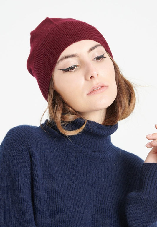 Bonnet unisex en cachemire rouge bordeaux - UNI 2