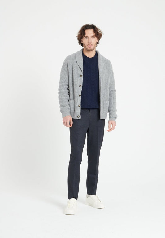 Cardigan col châle homme en cachemire 4 fils gris clair - ZACH 4