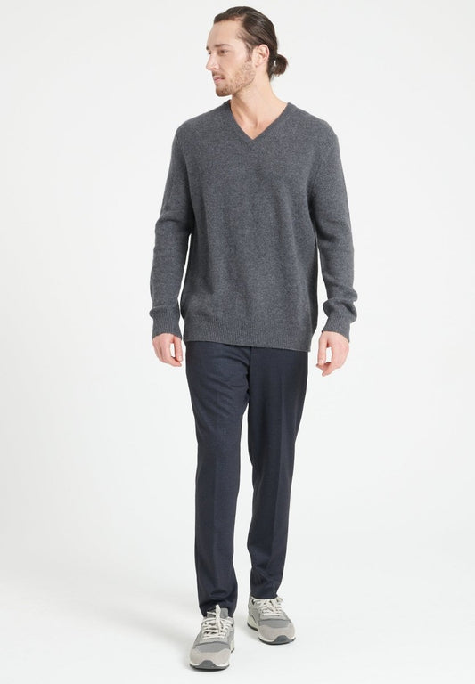 Pull col V cachemire gris anthracite homme - LUKE 1