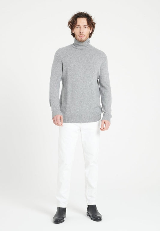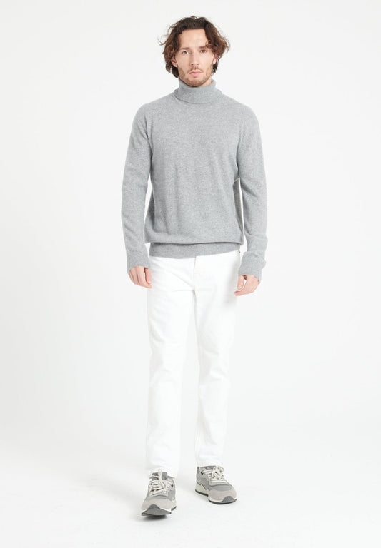 Pull col roulé cachemire gris clair homme - LUKE 3
