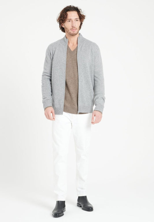 Gilet zippé cachemire gris clair homme - LUKE 8