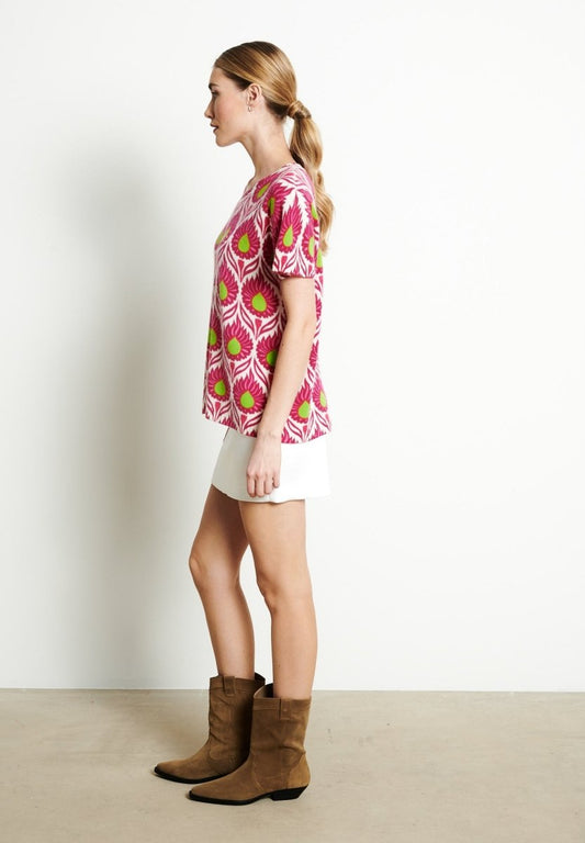 T-shirt col V cachemire rose baby/imprimé femme - RIA 5