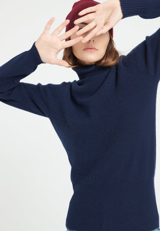 Pull col roulé cachemire bleu marine femme - LILLY 21