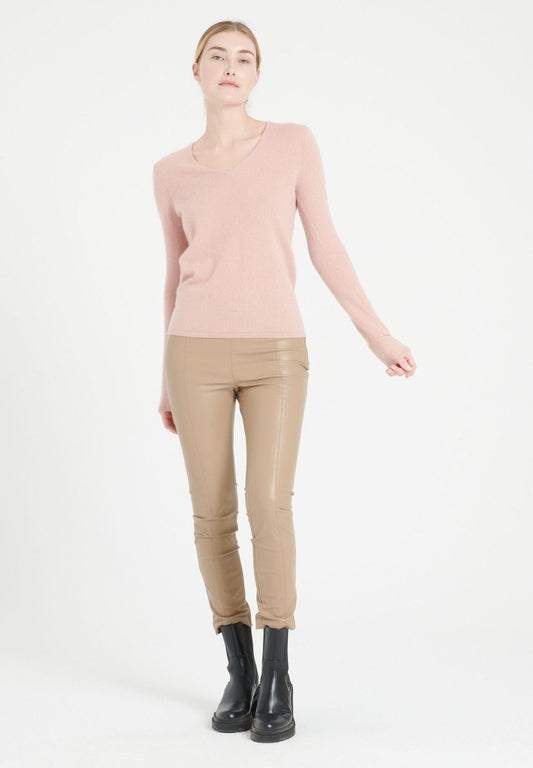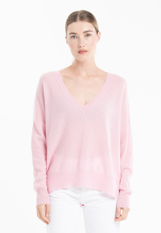 Damen-Kaschmirpullover mit V-Ausschnitt in Babyrosa/Indischrosa – NAMI 23