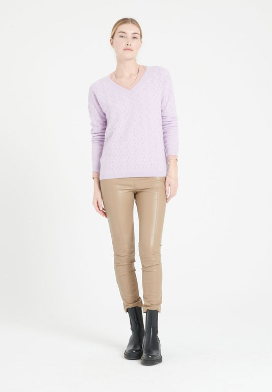 Lilafarbener Damen-Kaschmirpullover mit V-Ausschnitt - LILLY 27