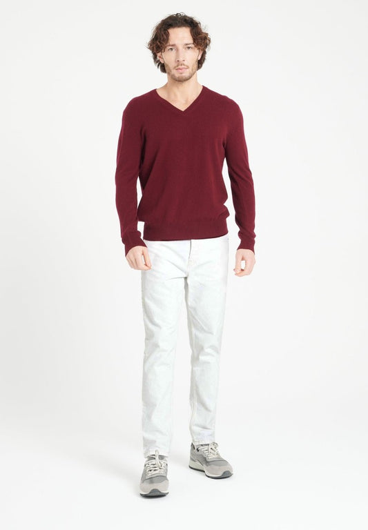 Burgunderroter Kaschmirpullover mit V-Ausschnitt für Herren - LUKE 1