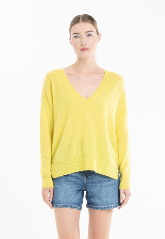 Damenpullover aus Kaschmir mit V-Ausschnitt in Neongelb – RIA 3