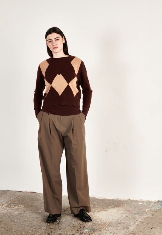 Pull col V cachemire marron/camel clair femme - HANA 7