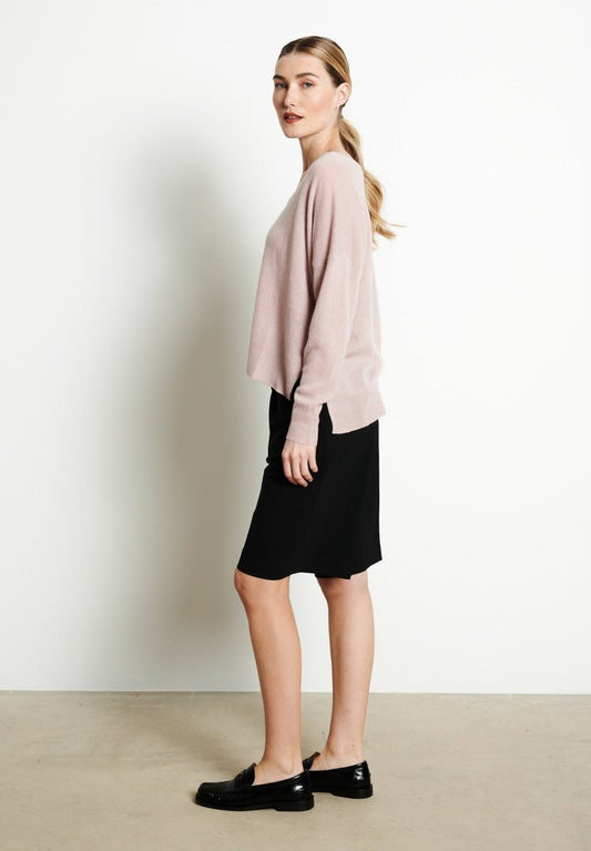 Puderrosa Kaschmirpullover mit V-Ausschnitt für Damen - LILLY 2A