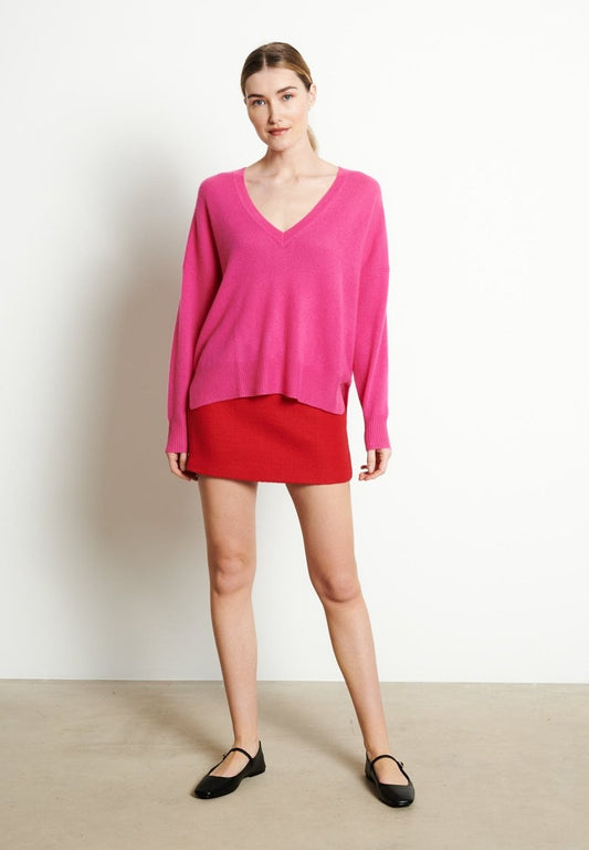 Barbie-pinker Kaschmirpullover mit V-Ausschnitt für Damen – RIA 3