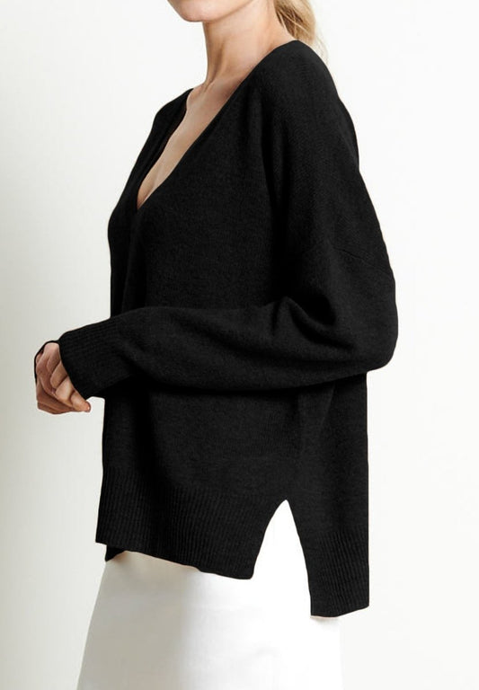 Schwarzer Kaschmirpullover mit V-Ausschnitt für Damen - MIA 7