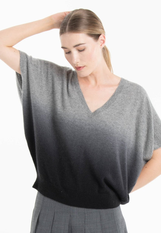 Damen-Kaschmirpullover mit V-Ausschnitt, mausgrau/schwarz – RIA 7B