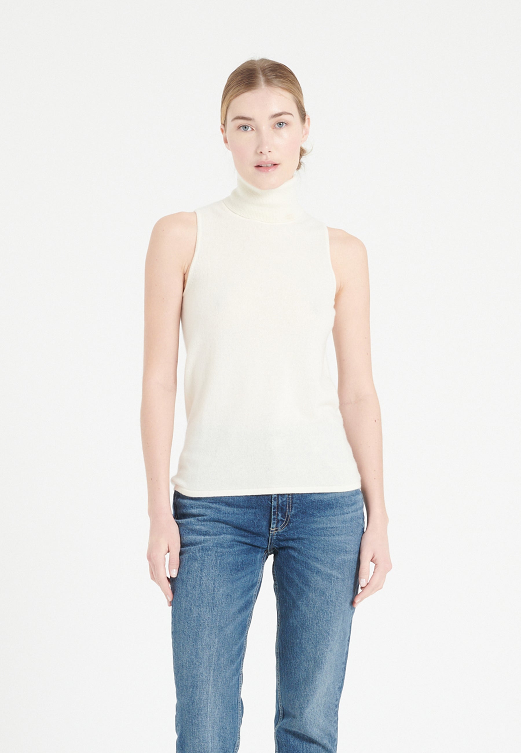 Ärmelloser Rollkragenpullover aus ecrufarbenem Kaschmir für Damen - LILLY 13