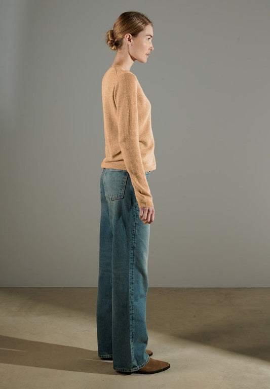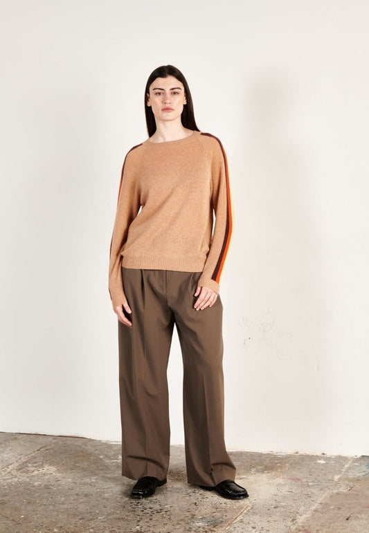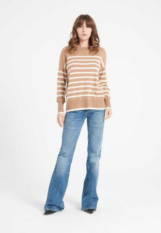 Women's camel/ecru cashmere round-neck sweater - LILLY 24