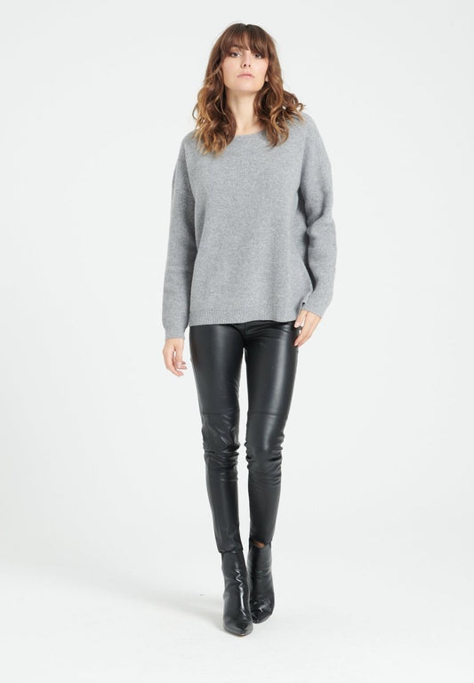 Women's light gray cashmere crew neck sweater - NAMI 4