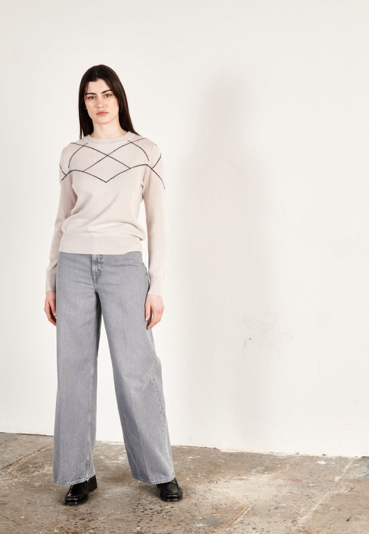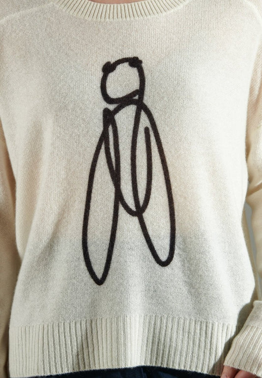 Women's ecru/printed cashmere round neck sweater - NAMI 19