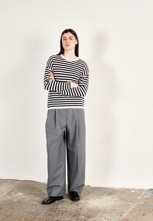 Pull col rond femme en cachemire rayures écru & bleu marine - HANA 5