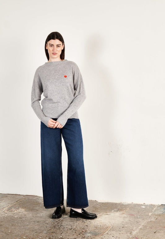 Women's light gray cashmere crew neck sweater - LILLY 1
