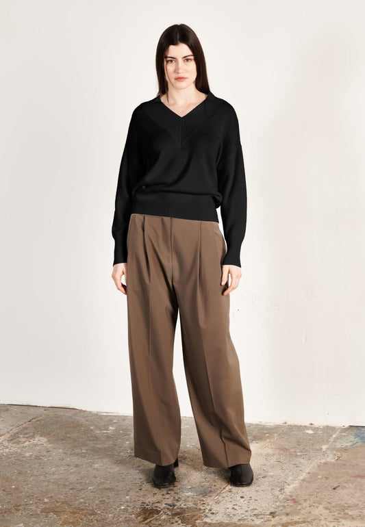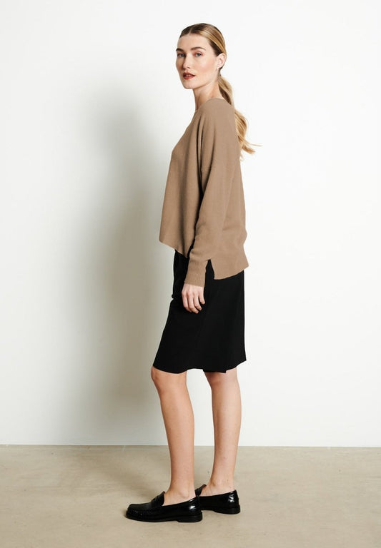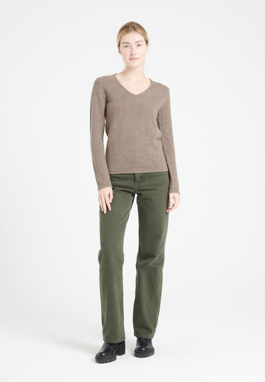 Pull col V femme en cachemire beige foncé - HANA 1