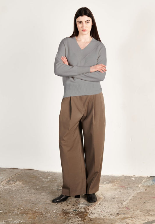 Women's oversized ultra-fine cashmere and wool V-neck sweater in gray - KELLY 10