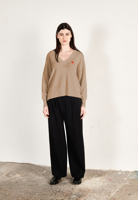 Pull col V femme en cachemire beige - HANA 1
