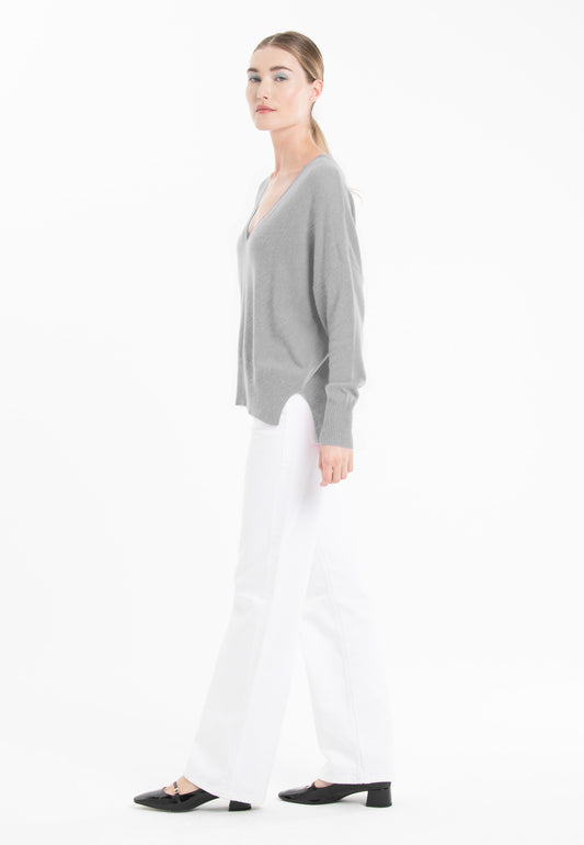 Women's light gray cashmere V-neck sweater - LILLY 2B