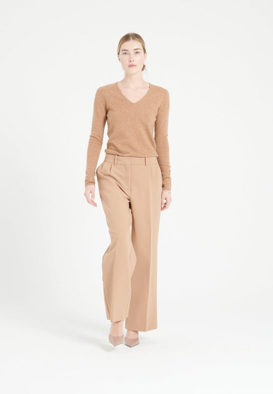 Women's camel cashmere V-neck sweater - LILLY 2A