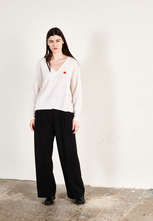 Women's ecru white cashmere V-neck sweater - RIA 3