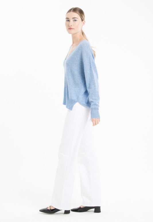 Women's sky blue cashmere V-neck sweater - LILLY 2A
