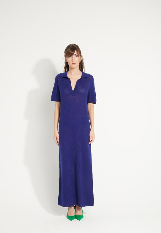 Women's midnight blue cashmere polo neck long dress - AVA 18