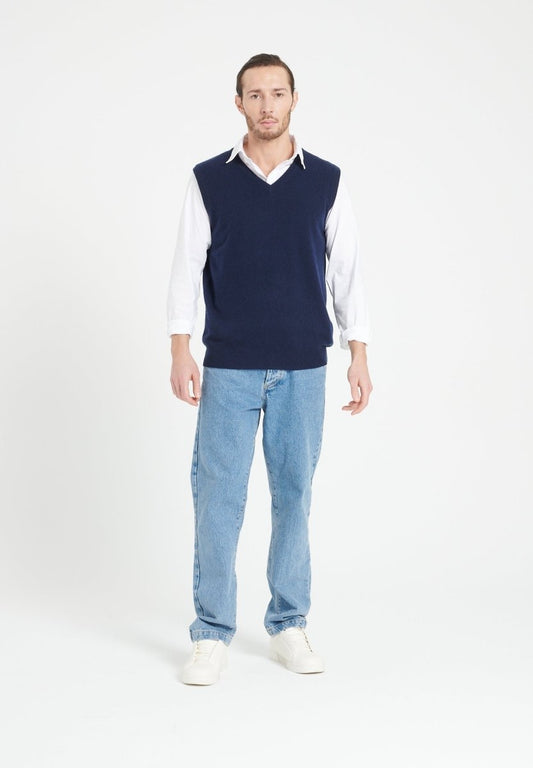 Men's navy blue cashmere sleeveless sweater - LUKE 9