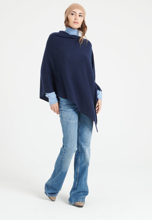 Women's navy blue cashmere poncho - LILLY 9