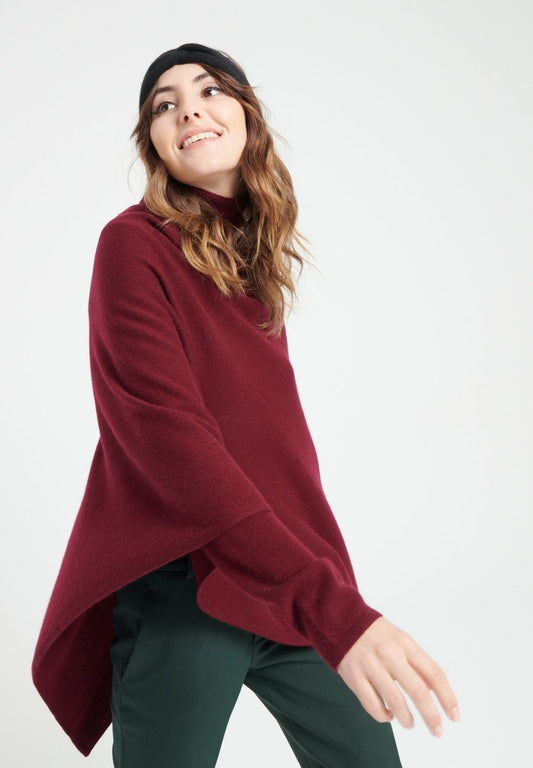 Women's burgundy red cashmere poncho - LILLY 9