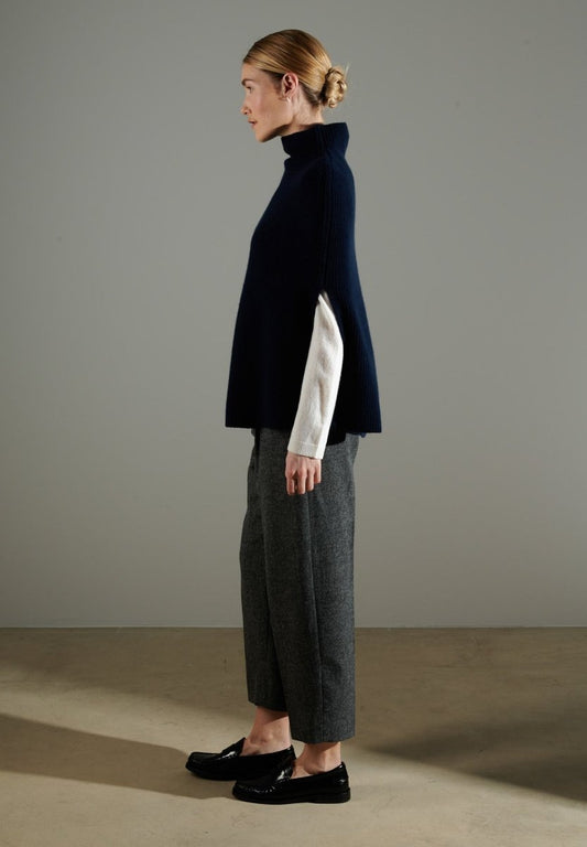 Women's 4-ply navy blue cashmere poncho - NAMI 10