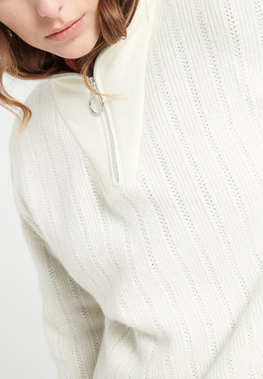 Women's ecru cashmere zip-neck sweater - MIA 4