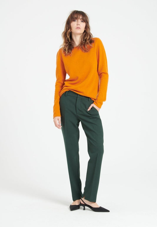 Women's pumpkin orange cashmere boat neck sweater - LILLY 5A