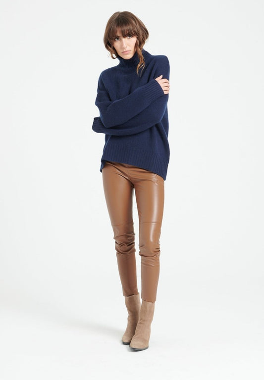 Women's navy blue cashmere high neck sweater - ZAYA 13
