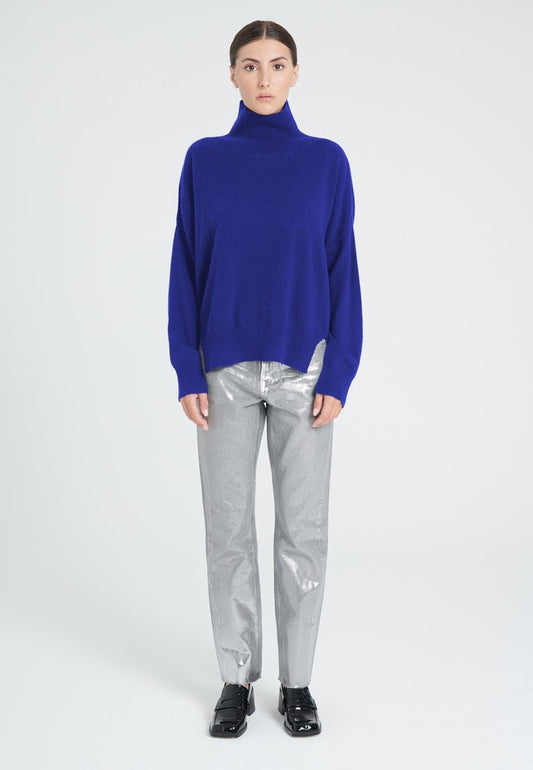 Women's sky blue cashmere high neck sweater - ZAYA 13