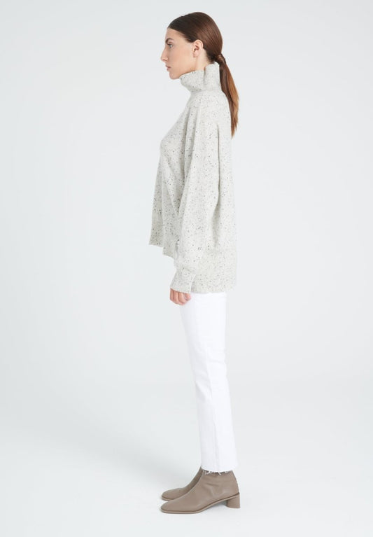 Women's white and black dot cashmere high neck sweater - ZAYA 13