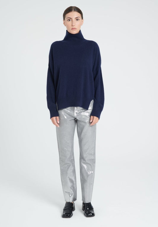 Women's navy blue 10-ply cashmere funnel neck sweater - MIA 9
