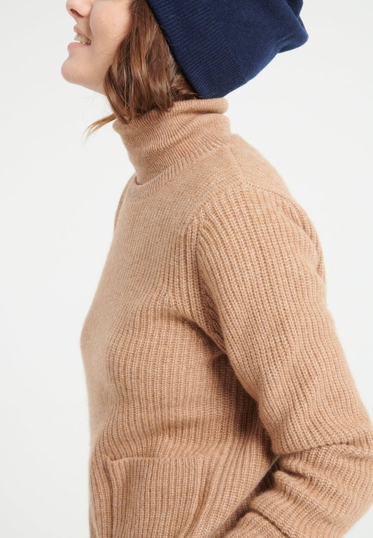 Women's camel cashmere turtleneck sweater - LILLY 21