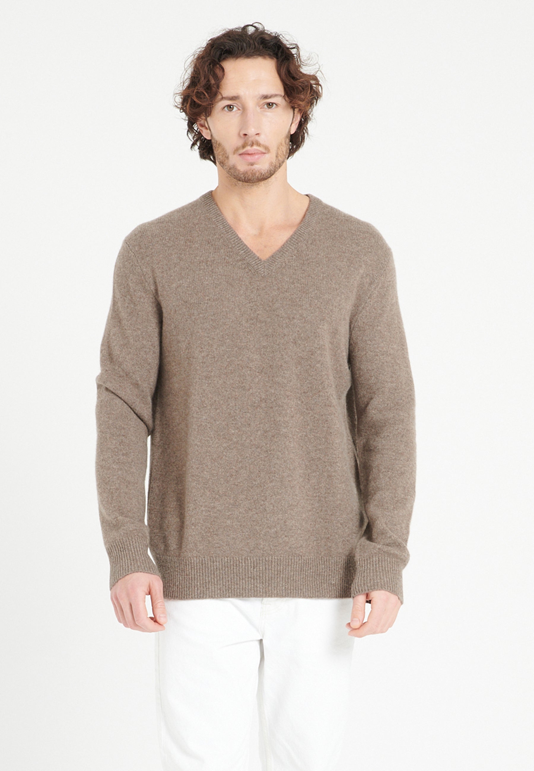 Men's 4-ply taupe cashmere V-neck sweater - LUKE 13